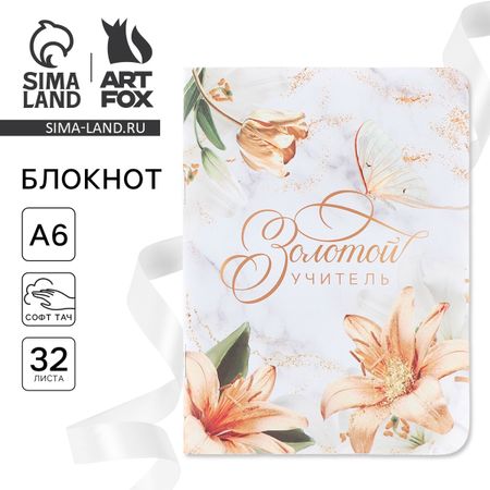 Блокнот «Золотой учитель», формат А6, 32 листа, софт-тач. Блокнот отлично подойдет в качестве подарка. Яркий дизайн, несомненно, привлечет внимание и будет выделяться, а удобный формат позволит использовать его с комфортом. • Пиши • Планируй • Выполняй <ul> <li> Обложка : мягкая;</li> <li> Количество листов: 32;</li> <li> Крепление : на скрепке;</li> <li> Линовка : клетка;</li> <li> Отделка: софт-тач;</li> <li> Формат: А6.</li> </ul>