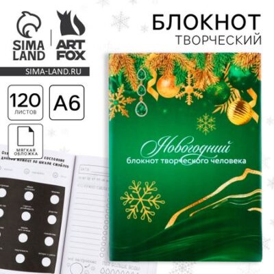 Блокнот А6, 120 листов, для творческого человека в суперобложке «Новогодний». Блокнот творческого человека станет прекрасным подарком на праздник. <ul> <li> Формат: А6;</li> <li> Форма: прямоугольник ;</li> <li> Количество листов: 120 ;</li> <li> Тип скрепления: на склейке ;</li> <li> Упаковка: пленка.</li> </ul>