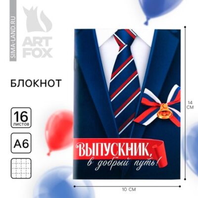 Блокнот А6, 16 л., на скрепке «Выпускной:Костюм». Блокнот прекрасный подарок и помощник в творческих делах ребенка. <ul> <li> Пиши</li> <li> Планируй</li> <li> Выполняй</li> </ul> • Обложка : мягкая • Формат : А6 • Количество листов: 16 • Крепление : скрепка • Линовка : клетка