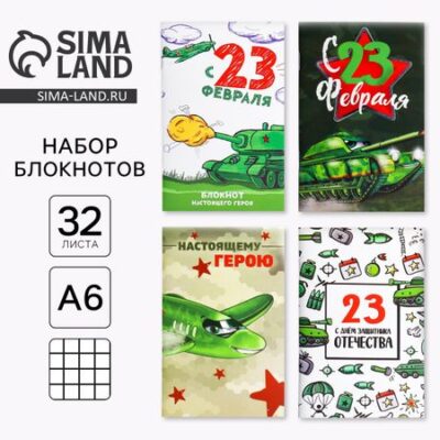 Блокнот А6, 32 листа, набор из 4 шт. в пакете «С 23 Февраля». Набор блокнотов станет прекрасным подарком на праздник. • Мечтай; • Записывай; • Выполняй. <ul> <li> Формат: А6;</li> <li> Линовка блока: клетка;</li> <li> Форма: прямоугольник;</li> <li> Количество листов: 32;</li> <li> Тип скрепления: на скобе.</li> </ul>