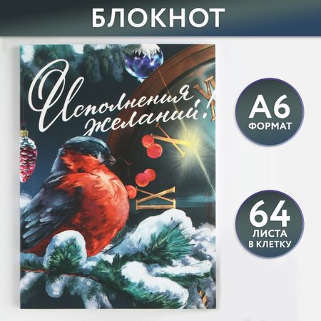 Блокнот А6, 64 л., «Исполнения желаний», мягкая обложка. Блокнот в мягкой обложке станет прекрасным подарком на праздник. • Мечтай; • Записывай; • Выполняй. <ul> <li> Формат:А6;</li> <li> Форма: прямоугольник ;</li> <li> Количество листов: 64 ;</li> <li> Линовка блока: клетка ;</li> <li> Тип скрепления: на склейке;</li> <li> Упаковка: пленка.</li> </ul> Состав: бумага.