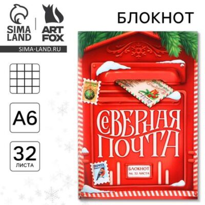 Блокнот детский, А6, 32 листа «Северная почта». Блокнот в мягкой обложке станет прекрасным подарком на праздник. • Мечтай; • Записывай; • Выполняй. <ul> <li> Формат:А6;</li> <li> Форма: прямоугольник ;</li> <li> Количество листов: 32 ;</li> <li> Линовка блока: клетка ;</li> <li> Тип скрепления: на скобе;</li> <li> Упаковка: пакет.</li> </ul> Состав: бумага.