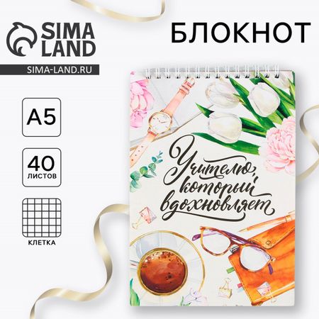 Блокнот, формат А5, на гребне 40 л. «Учителю, который вдохновляет». Блокнот отлично подойдет в качестве подарка. Яркий дизайн несомненно привлечет внимание и будет выделяться , а удобный формат позволит использовать с комфортом. • Пиши • Планируй • Выполняй <ul> <li> Обложка : мягкая;</li> <li> Количество листов: 40;</li> <li> Крепление : на гребне/спирали;</li> <li> Линовка : клетка;</li> <li> Формат: А5;</li> <li> Упаковка: пленка;</li> </ul> Состав: бумага, картон.