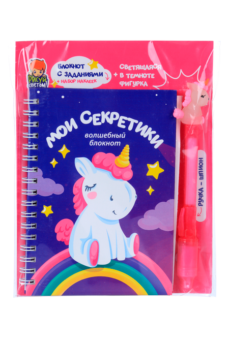 Блокнот Рисуй светом Мои секретики 12 заданий наклейки/свет ручка-шпион с фигуркой-единорогом