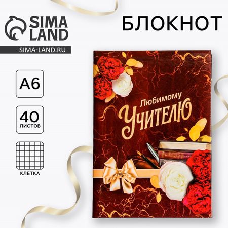 Блокнот в твердой обложке «Любимому Учителю», формат А6, 40 листов. Блокнот отлично подойдет в качестве подарка. Яркий дизайн несомненно привлечет внимание и будет выделяться , а удобный формат позволит использовать с комфортом. • Пиши • Планируй • Выполняй <ul> <li> Обложка : твердая;</li> <li> Количество листов: 40;</li> <li> Крепление : сшивной;</li> <li> Линовка : клетка;</li> <li> Формат: А6.</li> </ul> Состав: Бумага, картон.