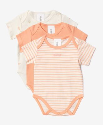 Комплект из 3-х боди с коротким рукавом — прекрасный выбор для первого гардероба девочки. Боди универсальны: их можно носить как нижнее белье, пижамку для сна или сочетать с другой одеждой. Удобная конструкция на кнопках, мягкое трикотажное полотно с лаконичными рисунками, фурнитура высочайшего качества гарантируют уют, комфорт и безопасность для малышки. В оформлении боди используются небольшие жаккардовые нашивки.