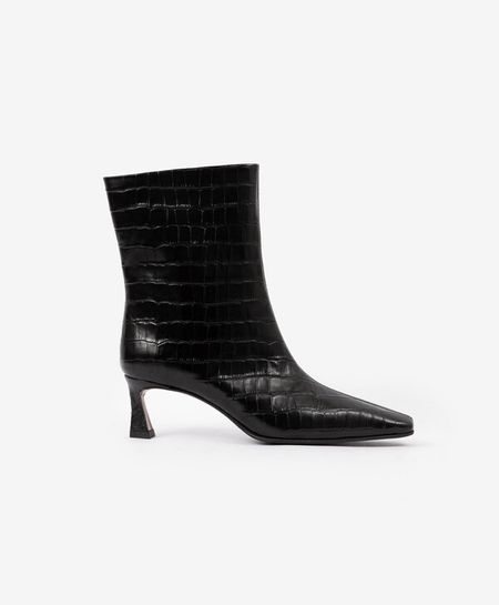 Финальный аккорд в мелодии женского стиля! Черные ботильоны на невысоком устойчивом каблуке — классика городского стиля. Они прекрасно впишутся в любой образ, составив интересное сочетание. Выполненные из натуральной тисненой кожи, имитирующей кожу крокодила, ботильоны смотрятся очень эффектно и стильно. Уникальная фактура, приятный на ощупь материал, универсальный цвет — все это делает модель незаменимой в гардеробе современной женщины.ㅤМатериал верха — натуральная кожа, имитирующая кожу крокодилаМатериал подкладки — натуральная кожаМатериал низа — тунитКаблук-рюмочкаШирокое голенищеВысота каблука — 4,5 см