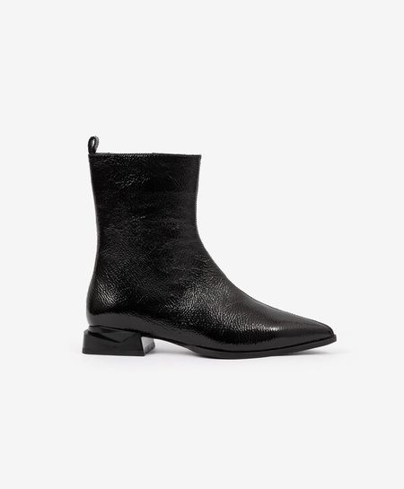 Прекрасный вариант для базового гардероба — черные ботинки на низком устойчивом каблуке. Они выполнены из мягкой, приятной на ощупь натуральной лакированной кожи. Минималистичный дизайн позволяет комбинировать их с множеством изделий: юбками разной длины, джинсами, брюками и платьями. Ботинки застегиваются на молнию.Материал верха — натуральная лакированная кожаМатериал подкладки — натуральная кожаМатериал низа — тунитЗастежка на молниюНизкий каблукВысота каблука — 3 см