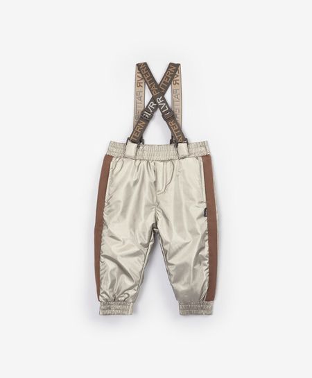 Утепленные плащевые брюки — прекрасный вариант для осенних прогулок. Выполненные из модной серебристой плащовки с матовым блеском, брюки максимально просты в уходе и эксплуатации. В условиях непогоды, слякоти, дождя, область загрязнения достаточно протереть влажной салфеткой, придав изделию первозданный вид. Брюки имеют регулирующиеся по длине эластичные лямки.