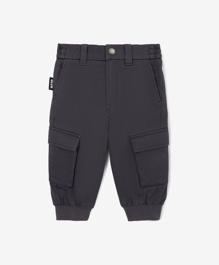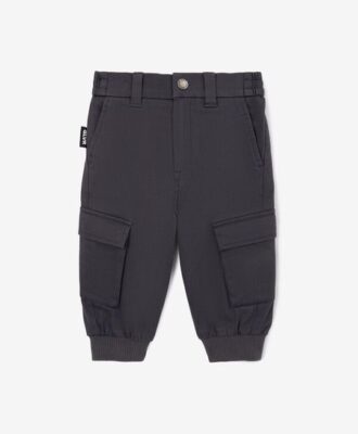Лаконичные, стильные и современные — текстильные синие брюки с карманами-карго подойдут на все случаи жизни! Выполнены из формоустойчивой мягкой и плотной ткани с доминирующим содержанием хлопка. Эластичный пояс и манжеты обеспечивают идеальную посадку.Брюки застегиваются на молнию и металлический крючок. В оформлении задней части брюк использована фирменная вышивка.