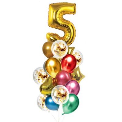 Букет из шаров «День рождения – 5 лет», фольга, латекс, набор 21 шт., цвет золотой. Букет — неотъемлемый атрибут праздника. Но он не обязательно должен быть цветочным. Букет из шаров покорит сердце виновника торжества и создаст атмосферу праздника с первых минут встречи. Мы сформировали для вас готовый набор, который станет прекрасным дополнением к подарку на день рождения! Вам осталось только надуть изделие.