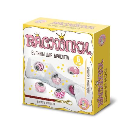 Раскопки «Бусины для браслета» (6 бусин-шармов) розовый. Состав игры:Пласт грунта (гипс) 11х11 см; Деревянный стек – 1 шт;Бусины из пластика — 6 шт. (розовые), Шнурок для браслета.Рекомендуется для детей старше 6 лет.