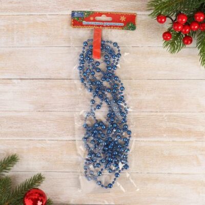 Бусы на елку «Шары», длина 2.7 м, d=7 мм, синие. Эти синие новогодние бусы длиной 2,7 метра и диаметром 7 мм станут ярким и аккуратным украшением для елки и праздничного интерьера. Их однотонный цвет и классическая форма создают гармоничный образ, который легко вписывается в любой стиль оформления к Новому году. Особенности <ul> <li> Длина – 2,7 метра, что позволяет оформить как небольшую, так и крупную елку или создать эффектные гирлянды.</li> <li> Диаметр бусин – 7 мм, гладкая поверхность придает им аккуратный и завершенный вид.</li> <li> Цвет – насыщенный синий оттенок, идеально подходящий для зимних и новогодних декораций.</li> <li> Материал – пластик обеспечивает долговечность и безопасность при использовании.</li> <li> Форма – классические бусины в виде шариков создают праздничную атмосферу.</li> <li> Стиль – однотонные украшения легко сочетаются с мишурой, гирляндами и другими декоративными элементами для оформления елки и комнаты.</li> </ul> Преимущества использования <ul> <li> Добавляют яркий акцент к новогоднему декору, делая его более завершенным и праздничным.</li> <li> Обеспечивают универсальность оформления: подходят для классического, современного или минималистского стиля.</li> <li> Легко сочетаются с другими украшениями для создания гармоничных композиций на елке или в интерьере.</li> </ul> Эти синие бусы станут надежным дополнением к вашему новогоднему декору. Их универсальный дизайн подчеркнет атмосферу праздника и создаст уютную зимнюю обстановку. Просты в использовании и долговечны, они сохранят свой привлекательный вид на многие сезоны зимних праздников, радуя вас каждый год.