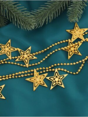 Бусы на елку «Звезды», длина 2.7 м, d=40 мм, золотистые. Превратите вашу елку в сияющий символ праздника! Золотистые бусы «Звезды» длиной 2,7 метра станут идеальным выбором для тех, кто ценит роскошь и элегантность. Их крупные звезды диаметром 40 мм добавляют нотку великолепия, превращая вашу елку или интерьер в центр внимания. <b> Особенности</b> <ul> <li> <strong> Изысканный дизайн:</strong> крупные золотистые звезды создают эффект праздничного сияния, подчеркивая торжественную атмосферу.</li> <li> <strong> Универсальная длина:</strong> 2,7 метра позволяют обернуть бусы вокруг высокой елки или использовать их для украшения окон, перил или мебели.</li> <li> <strong> Простота использования:</strong> гибкие и легкие бусы легко фиксируются на ветках или других поверхностях без дополнительных креплений.</li> <li> <strong> Долговечность:</strong> материал из пластика устойчив к повреждениям и сохраняет свой золотистый блеск даже после многократного использования.</li> </ul> <b> Почему стоит выбрать эти бусы?</b> Эти бусы станут универсальным решением для создания стильного новогоднего декора. Их золотистый оттенок гармонично сочетается с любыми другими украшениями, будь то классические шары или современные гирлянды. Благодаря компактности и легкости хранения, они не займут много места в межсезонье, оставаясь готовыми к следующему празднику. Подарите своей елке и интерьеру нотку праздничного великолепия с этими золотистыми бусами. Они не только украсят пространство, но и создадут атмосферу радости и волшебства, которая объединяет семью и друзей в самый долгожданный праздник года.