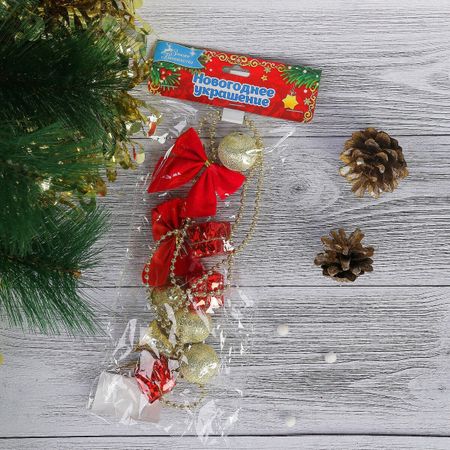 Бусы на елку «Банты, колокольчики, подарки», 90 см, красно — золотистые. Эти новогодние бусы длиной 90 см в красно-золотистых тонах станут ярким украшением елки и праздничного интерьера. Их однотонный дизайн и тематическая цветовая гамма создают элегантную атмосферу, идеально дополняя праздничный декор к Новому году. Особенности <ul> <li> Длина – 0,9 метра, что позволяет легко оформить елку или создать оригинальные гирлянды и композиции.</li> <li> Форма – бусины в виде классических игрушек, выполненные из пластика.</li> <li> Цвет – красно-золотистые оттенки, символизирующие тепло, богатство и праздничность.</li> <li> Материал – пластик обеспечивает долговечность и безопасность при использовании.</li> <li> Тематика – подходит для оформления новогодней елки и праздничных интерьеров.</li> <li> Особенность – однотонная поверхность бусин подчеркивает их универсальность и гармонично сочетается с другими украшениями.</li> </ul> Преимущества использования <ul> <li> Добавляют яркий акцент к елке, делая ее более привлекательной и праздничной.</li> <li> Обеспечивают возможность создания различных декоративных композиций благодаря насыщенной цветовой гамме.</li> <li> Легко сочетаются с мишурой, гирляндами и другими декоративными элементами для достижения желаемого стиля.</li> </ul> Эти красно-золотистые бусы станут надежным украшением вашего зимнего декора. Их классический дизайн подчеркнет атмосферу праздника и создаст уютную обстановку. Просты в использовании и долговечны, они сохранят свой привлекательный вид на многие сезоны зимних праздников, радуя вас каждый год.