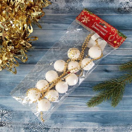 Бусы на елку «Белые шарики с блестками», длина 1.2 м, d=2.5 см. Эти белые елочные бусы с блестками длиной 1,2 метра и диаметром 2,5 см станут стильным дополнением к новогоднему декору. Их однотонный дизайн и сверкающая поверхность создают праздничную атмосферу и подчеркнут изящность украшения. Особенности <ul> <li> Длина – 1,2 метра, подходит для оформления как небольших, так и больших елок или для создания гирлянд.</li> <li> Диаметр бусин – 2,5 см, гладкая поверхность с блестками придает им эффектный вид.</li> <li> Цвет – белый, символизирующий чистоту и свежесть зимних праздников.</li> <li> Материал – пластик обеспечивает долговечность и безопасность при использовании.</li> <li> Форма – классические бусины в виде шариков создают традиционный новогодний образ.</li> <li> Стиль – однотонные украшения легко сочетаются с другими элементами декора для гармоничного оформления.</li> </ul> Преимущества использования <ul> <li> Добавляют яркий акцент к праздничному интерьеру, делая его более завершенным и уютным.</li> <li> Легко комбинируются с гирляндами, мишурой и другими декоративными элементами для создания эффектных композиций.</li> <li> Подходят для оформления как классических, так и современных новогодних интерьеров.</li> </ul> Эти белые блестящие бусы станут надежным украшением вашей елки. Их универсальный дизайн подчеркнет торжественность праздника и создаст праздничную атмосферу. Просты в использовании и долговечны, они сохранят свой привлекательный вид на многие сезоны зимних праздников, радуя вас каждый год.