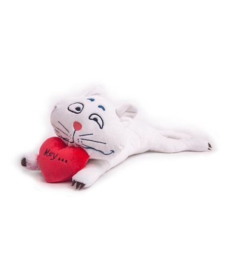 Очаровательный котик белого цвета с милым выражением мордочки понравится и взрослому и ребенку. В лапках у котика сердечко, поэтому игрушка станет отличным подарком к любому празднику для самых близких людей. Благодаря вытянутому телу и мягким приятным на ощупь материалам, игрушку можно использовать в качестве подушки или оригинального предмета интерьера. Игрушку также можно взять с собой в дорогу в машину, поезд или самолет. Вся отделка выполнена вышивкой. Изготовлена из сертифицированных материалов высокого качества.