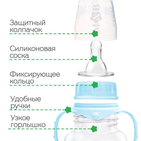Главная » Товары для детей Бутылочка для кормления m&b Просмотров 10 Бутылочка для кормления M&B «Сыночек», классическое горло, с ручками, от 3 мес., 250 мл., голубой. Mum&Baby