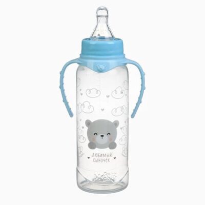 Главная » Товары для детей Бутылочка для кормления m&b Просмотров 4 Бутылочка для кормления M&B «Наш любимый сыночек» от 3 мес., 250 мл цилиндр, с ручками, голубой. Mum&Baby