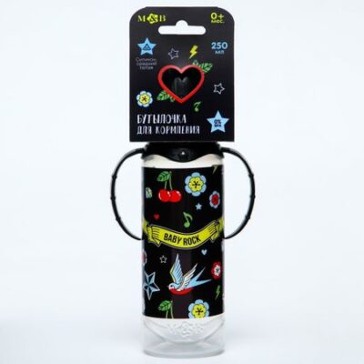 Бутылочка для кормления M&B Baby Rock, классическое горло, с ручками, от 0 мес, 250 мл., цилиндр. Пластиковая бутылочка мало весит, поэтому ее удобно давать ребенку. Износостойкий материал прослужит около 2 лет. Особенности: Силиконовая соска не имеет вкуса и запаха. Ребра жесткости соски не дают ей сминаться во время кормления. Кольцо бутылочки имеет рельефные элементы, имитирующие ареолы груди. Выпуклая мерная шкала помогает точно определить объем питания. Ёмкость выполнена в классической прямой форме. Изделие не содержит бисфенол А. Бутылочка с оригинальным дизайном порадует не только кроху, но и родителей!