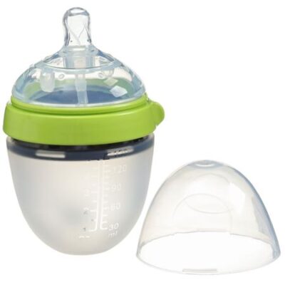 Бутылочка для кормления M&B, широкое горло, Ø70мм, от 3 мес, 150мл., силиконовая колба, цвет зеленый. Бутылочка M&B изготовлена из нежного, гиппоаллергенного, пищевого силикона. Анатомическая форма естественным образом имитирующая грудное вскармливание, а наличие антиколиковой системы препятствует возникновению колик у малыша. <b> Особенности:</b> • Анатомическая форма корпуса максимально напоминает материнскую грудь, а ее приятная матовая поверхность не позволяет малышу выронить бутылочку из маленьких ручек. • Гибкий съемный гравитационный шарик позволит ребенку пить в любом положении. • Соска бутылочки содержит в себе два отверстия для воздуха, что позволяет младенцу не прикладывать усилий для питания. • Благодаря широкому горлышку бутылочку удобно мыть руками, без использования специальных щеток. • Корпус бутылочки содержит удобную шкалу, благодаря которой, вы не ошибетесь, при кормлении малыша детскими смесями. • Состав бутылочки не содержит красящих элементов — она абсолютно безвредна и рассчитана на долговременное использование. • Детскую бутылку можно стерилизовать, кипятить до 5 мин (бутылочка термостойкая), а так же мыть в посудомоечной машине.
