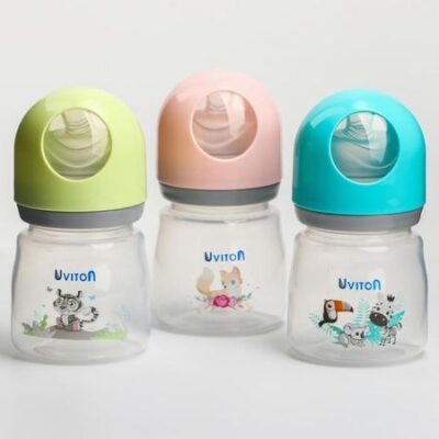 Пластиковая бутылочка мало весит, поэтому её удобно давать ребёнку. Износостойкий материал прослужит около 2 лет.ОсобенностиСиликоновая соска не имеет вкуса и запаха.Рёбра жёсткости соски не дают ей сминаться во время кормления.Кольцо бутылочки имеет рельефные элементы, имитирующие ареолы груди.Выпуклая мерная шкала помогает точно определить объём питания.Эргономичная форма ёмкости разработана специально для удобного захвата.Изделие не содержит бисфенол А.