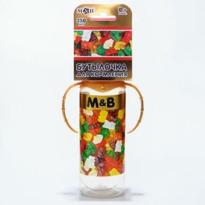 Бутылочка для кормления «Мармелад M&B», классическое горло, 250 мл., от 0 мес., цилиндр, с ручками. Пластиковая бутылочка мало весит, поэтому ее удобно давать ребенку. Износостойкий материал прослужит около 2 лет. Особенности: Силиконовая соска не имеет вкуса и запаха. Ребра жесткости соски не дают ей сминаться во время кормления. Кольцо бутылочки имеет рельефные элементы, имитирующие ареолы груди. Выпуклая мерная шкала помогает точно определить объем питания. Ёмкость выполнена в классической прямой форме. Изделие не содержит бисфенол А. Бутылочка с оригинальным дизайном порадует не только кроху, но и родителей!