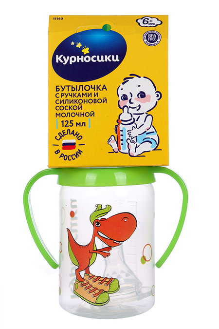 Бутылочка Курносики полипропиленовая с силик соской с ручками Колобок с 6 мес+, 125 мл, (11140)