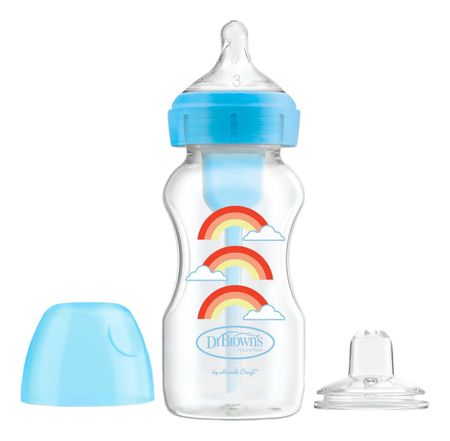 Бутылочка с широким горлышком антиколик + соска от 6 месяцев Natural Flow Options+ WB91605 (синие радужки)