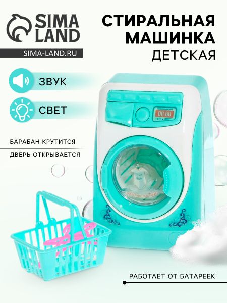 Бытовая техника «Стиральная машина», с аксессуарами, свет, звук. Игрушечная стиральная машина со светом и звуком — это реалистичная модель бытовой техники, которая станет отличным подарком для детей от 3 лет. С ней малыши смогут почувствовать себя настоящими хозяевами, ухаживая за своими вещами. <b> Особенности</b> <ul> <li> Машинка оснащена вращающимся барабаном, открывающейся дверцей и световыми эффектами. Звуковые сигналы дополняют впечатление, создавая атмосферу настоящей стирки. Ребенок сможет имитировать процесс стирки, развивая воображение и бытовые навыки.</li> <li> В набор входят корзинка для белья и вешалки для одежды. Это делает игру еще более увлекательной и разнообразной. Малыш сможет «стирать», «сушить» и «развешивать» кукольную одежду.</li> <li> Игрушка предназначена для детей от 3 лет. Она выполнена из качественных материалов, безопасных для ребенка.</li> <li> Для работы требуется 2 батарейки типа АА (в комплект не входят).</li> </ul> <b> Развиваемся играя</b> Игрушечная стиральная машина помогает развивать мелкую моторику, логическое мышление и социальные навыки. Ребенок учится заботиться о вещах, имитирует действия взрослых, что способствует его эмоциональному и интеллектуальному развитию. Это отличный подарок для мальчиков и девочек, который подарит часы увлекательной игры.