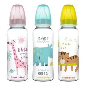 Бутылочка с узким горлышком изготовлена из безопасного полипропилена. Она легкая, прозрачная и имеет контурную форму с мерной шкалой. Бутылочку можно мыть в посудомоечной машине и обдавать кипятком. Она позволяет совмещать грудное вскармливание и кормление из бутылочки. Бутылочка имеет силиконовую универсальную соску 0м+. Емкость 250 мл. Не содержит бисфенол A Можно использовать в СВЧ-печи Можно использовать с рождения Можно мыть в посудомоечной машинеБутылочка подходит для электрического молокоотсоса EasyStart и ручного молокоотсоса Basic Canpol babies. Возможность сцеживания молока непосредственно в бутылочку облегчает безопасное кормление ребенка свежесцеженным грудным молоком. Доступна в нескольких цветах.Фруктовые соки или чай могут оставлять налет или изменение цвета на бутылочке/соске. Это не влияет на свойства продуктов.Можно мыть в посудомоечной машине. Её можно дезинфицировать и нагревать в микроволновой печи (бутылочка должна быть открыта).