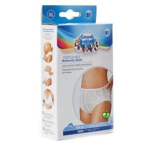 Одноразовые трусики предназначены для использования мамами в первые несколько недель после родов. Они сделаны из мягких, нежных для кожи волокон, позволяющих свободно циркулировать воздуху. На талии и в паху трусиков расположена мягкая резинка. Трусики хорошо прилегают и удерживают послеродовые прокладки. Размер XL. В упаковке 5 шт.На талии и в паху трусиков расположена мягкая резинка.Трусики находятся в дополнительной упаковке внутри коробки, что позволяет сохранять их в чистоте.Одноразовый продукт.Доступны в 3 размерах: M, L, XL — размер указан на упаковке.M окружность бедра ≤ 98 см.L окружность бедра ≤ 102 см.XL окружность бедра ≤ 108 см.