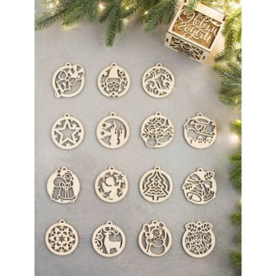 Набор украшений на елку в коробке 15 шт "Елочные шарики". Сима-ленд