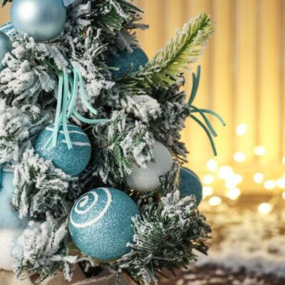 Искусственная елка настольная «Зимнее волшебство. Снежное яблочко», 39×21 см, ПВХ ветки отгибаются. Настольная зеленая елка с красными украшениями и отгибающимися