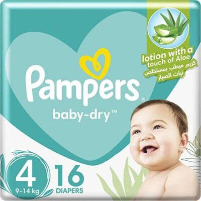Pampers Baby Diapers, Size 4, are designed for babies weighing between 9-14 kg. The pack contains 16 pieces of diapers. Pampers diapers have a unique design