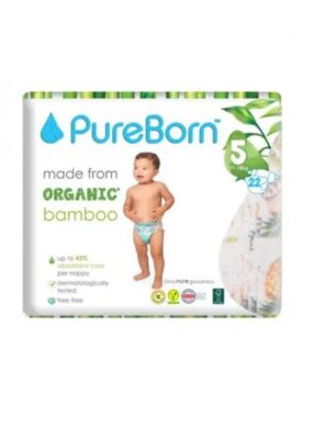 PureBorn Organic Baby Diapers in Size 5 are designed for babies weighing between 11 to 18 kilograms (24 to 40 pounds). Each pack contains 22 diapers.