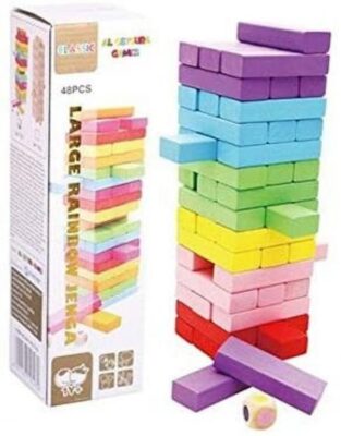 The Educational Toys Rainbow Jenga Wooden is a fun and educational game for kids and adults alike. Made with high-quality wooden blocks in vibrant rainbow