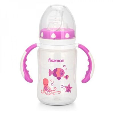 The Fissman Wide Neck Feeding Bottle With Handles 240ml in Pink is a convenient and practical choice for parents looking for a reliable feeding solution