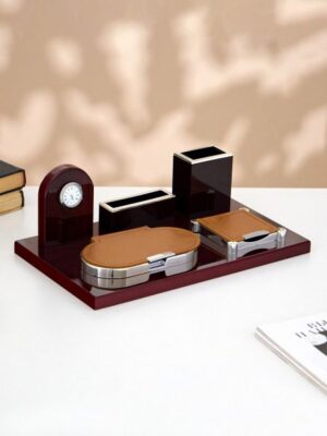 Набор настольный, органайзер 5 в 1 с визитницей и часами, 34×20×13 см. Порой рабочий стол настолько загружен, что негде расписаться или составить документ от руки.