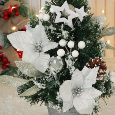 Искусственная елка настольная «Пуансетия белая» 36×19 см. Настольная елка «Пуансетия белая», 36 см — это мягкий и праздничный акцент для зимнего декора.