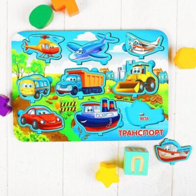 Рамка — вкладыш развивающая 3Д «Транспорт». Изучаем виды транспорта! Перед началом игры дайте ребенку рассмотреть фигурки транспорта.