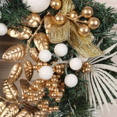 Венок новогодний d=34 см «Зимнее волшебство. Ветка ажурная», золотистый. Погрузитесь в атмосферу волшебства зимних праздников с великолепным венком, который