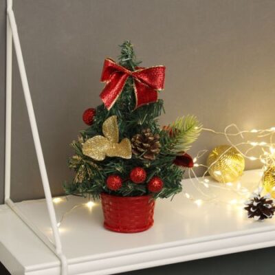 Искусственная елка настольная «Зимнее волшебство. Бантик» 21 см, ветки ПВХ отгибаются, игрушки красные шары и бант. Настольная елка «Бантик», 21 см, с