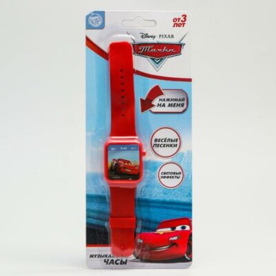 Часы музыкальные «Тачки», звук, Disney. <em> Веселый аксессуар с любимыми героями!</em> Музыкальные часы «Тачки» — это забавная игрушка для детей, которая порадует мелодиями и фразами. Яркий дизайн и звуковые эффекты делают ее отличным подарком для маленьких фанатов Тачек. <b> Особенности</b> <ul> <li> Часы проигрывают веселую мелодию и забавные фразы, создавая игровую атмосферу. Ребенок будет в восторге от интерактивного взаимодействия.</li> <li> Красный пластиковый корпус с изображением Молнии Маккуин привлекает внимание. Игрушка выглядит ярко и современно.</li> <li> Изготовлены из прочного пластика без острых краев. Подходят для детей от 3 лет.</li> </ul> <b> Развиваемся вместе с Disney</b> Музыкальные часы «Тачки» — отличный способ порадовать ребенка. Они развивают слуховое восприятие и вызывают положительные эмоции. Подарите малышу кусочек мультфильма в реальной жизни!