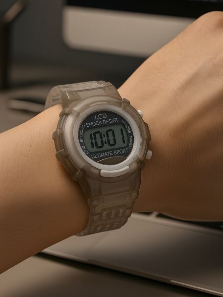 Часы наручные электронные детские, ремешок силикон, серые. Детские часы станут любимым аксессуаром для ребенка. Наручные часы помогут дошкольникам и младшеклассникам подружиться со временем. Благодаря часам ребята всегда будут знать, который сейчас час и сколько времени осталось до начала или окончания занятий. Линза часов имеет высокую устойчивость к царапинам.