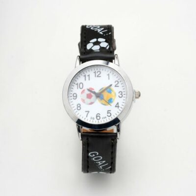 Часы наручные кварцевые детские "Футбол". Детские часы станут любимым аксессуаром для ребенка. Наручные часы помогут дошкольникам и младшеклассникам подружиться со временем. Благодаря часам ребята всегда будут знать, который сейчас час и сколько времени осталось до начала или окончания занятий. Линза часов имеет высокую устойчивость к царапинам.