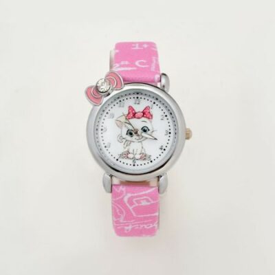 Часы наручные кварцевые детские "Кошечка", розовые. Детские часы станут любимым аксессуаром для ребенка. Наручные часы помогут дошкольникам и младшеклассникам подружиться со временем. Благодаря часам ребята всегда будут знать, который сейчас час и сколько времени осталось до начала или окончания занятий. Линза часов имеет высокую устойчивость к царапинам.