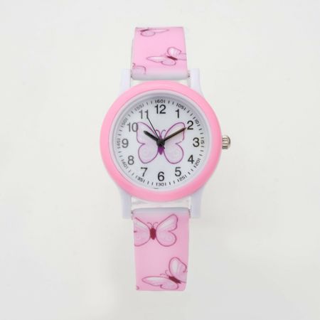 Часы наручные кварцевые детские "Бабочки". Детские часы станут любимым аксессуаром для ребенка. Наручные часы помогут дошкольникам и младшеклассникам подружиться со временем. Благодаря часам ребята всегда будут знать, который сейчас час и сколько времени осталось до начала или окончания занятий. Линза часов имеет высокую устойчивость к царапинам.