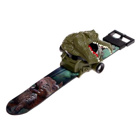 Часы-проектор «Эра динозавров», свет. Часы-проектор показывают не только время, но и много красочных картинок. Малыш научится правильно определять время, познакомится с разными животными нашей планеты. <b> Особенности игрушки</b> <ul> <li> На экране отображаются часы и минуты. Чтобы посмотреть время, необходимо поднять крышку в виде динозавра.</li> <li> Чтобы включить свет и переключить картинку, необходимо нажать на кнопку.</li> <li> Длина ремешка — 22,2 см, ширина — 3 см.</li> <li> Размер часов: 6,8 × 5,3 × 5 см.</li> <li> Для работы необходимы 4 батарейки типоразмера AG13. Батарейки в комплекте.</li> </ul> <b> Как пользоваться проектором</b> Нажмите кнопку и удерживайте ее. Переключайте слайды колесиком. Настройте резкость проекции с помощью фокуса. <b> Как пользоваться часиками</b> <ol> <li> Нажмите кнопку В1 для просмотра месяца и числа, затем экран вернется в прежний режим.</li> <li> Нажмите кнопку В1 два раза для отображения секунд.</li> <li> Нажмите кнопку В1, чтобы вернуться в исходный режим.</li> </ol> <b> На часах вы можете установить дату и время.</b> <ol> <li> Дважды нажмите на кнопку В2 и выберите нужный месяц с помощью кнопки В1.</li> <li> Нажмите на кнопку В2 и установите день с помощью кнопки В1.</li> <li> Нажмите на кнопку В2 и установите текущее время с помощью кнопки В1. Буква А обозначает время с 12 часов ночи до 12 часов дня, P — с 12 часов дня до 12 часов ночи.</li> <li> Нажмите на кнопку В2 и установите минуты с помощью кнопки В1.</li> <li> Нажмите на кнопку В2 один раз, чтобы вернуться к режиму часов.</li> </ol> Часы-проектор рекомендованы детям старше 3 лет.