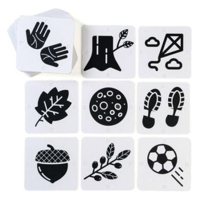 Черно-белые картинки для новорожденных «Мир вокруг нас», 40 картинок, 0+. <b> Развитие с самого рождения</b> Новорожденные проводят свои первые месяцы, изучая окружающий мир. Это значит, что чем больше зрительной информации получает ребенок, тем выше его мозговая активность. А для развития зрения лучше всего подходят контрастные изображения. <b> Как правильно заниматься с карточками? </b> <ul> <li> Показывайте их и медленно перемещайте вправо, а затем влево либо вращайте по часовой стрелке. Удаляйте и приближайте картинки (но не превышайте расстояния 50 см). </li> <li> Также можно развесить изображения на спинке кровати, а малыша положить напротив них, чтобы ему было хорошо видно картинки. Карточки заинтересуют ребенка, и он будет приподнимать головку, рассматривая их. В это время будут тренироваться мышцы шеи — так ребенок быстрее научится держать головку. </li> <li> Развесьте карточки на стенах по дому. Каждые несколько дней меняйте расположение картинок. </li> </ul> <b> Карточки способствуют: </b> <ul> <li> тренировке содружественных движений глаз; </li> <li> развитию пространственного восприятия;</li> <li> фокусировке взгляда. </li> </ul> <b> Внутри вы найдете: </b> <ul> <li> 20 карточек; </li> <li> методическое пособие для родителей. </li> </ul> <b> Развиваемся играя вместе с «ЛАС ИГРАС»! </b>